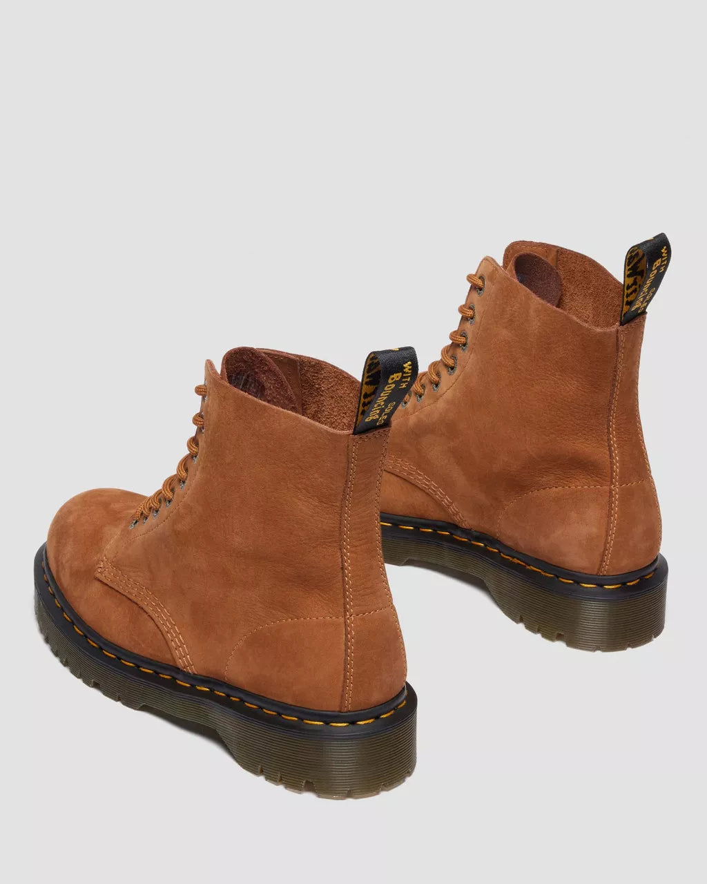 A tumbled transformation. Our fan favorite silhouette takes on a softer form as the 1460 Pascal Bex 8-eye boot. Milled Nubuck leather is known for its relaxed and silk-like feel, giving the boot a more supple finish. But the silhouette retains the toughness and quality of a classic DM’s boot, underscored by our signature detailing: a scripted heel loop. Yellow welt stitching. And a slightly raised trans Bex sole – taller than the original DMS sole but not as high as a platform. Nubuck WP - a water resistant soft tumbled nubuck with silky hand feel.