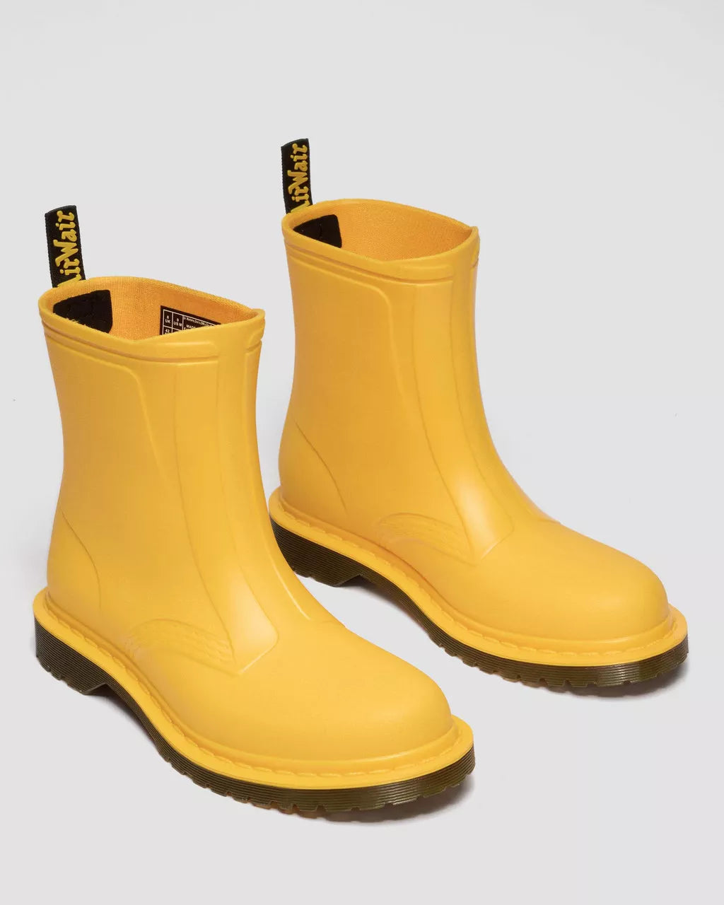 Born with fire. Raised on air. Ready for rain. The 1460 Rain boot is the first fully waterproof Dr. Martens welly boot. Designed to defy the discomfort of a downpour — with heat sealed waterproof PVC and a bouncing sole. Shaped to mirror the silhouette of our iconic 1460 boot: with faux stitch detailing, a rubberized heel tab, and a custom last shape to echo the fit and feel of the Original Dr. Martens boot. The air cushioned BEN sole is rugged and ready for long days on your feet. And our SoftWair insole ensures comfort from your first steps.
