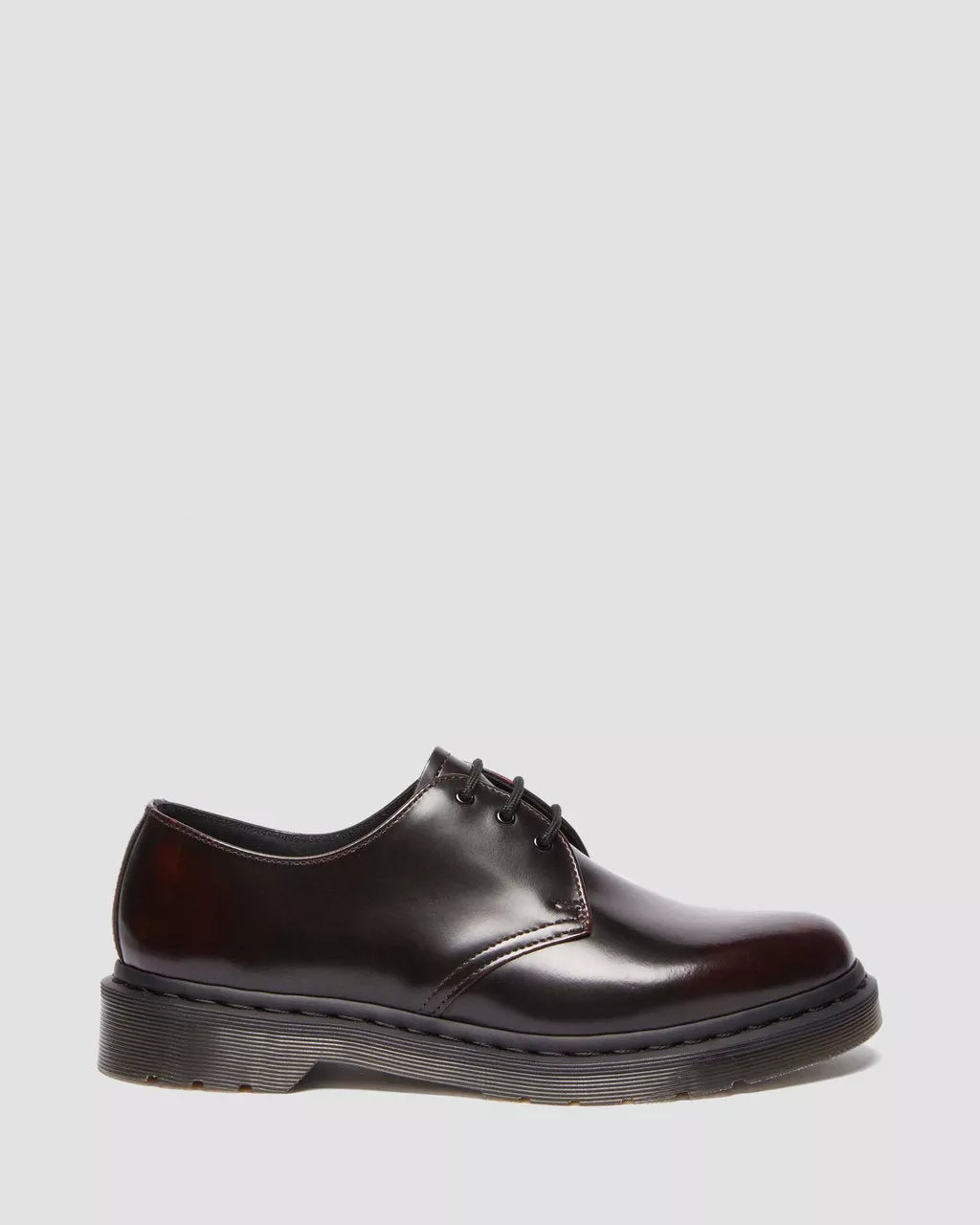 A high-shine leather with a base dye and contrasting topcoat, which is rubbed off to reveal the underlying color.
