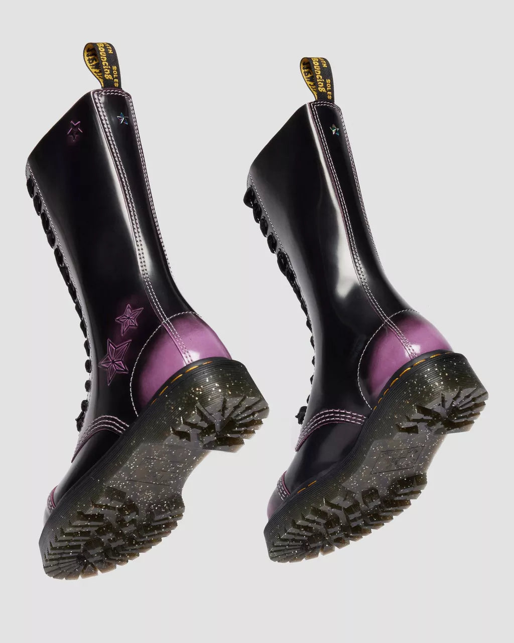 Self-express in the way you dress. Feel fierce in the limited-edition Bratz 1B99 boot. The high-rise boot features a bold 14-eye silhouette, complete with a signature heel loop and yellow welt stitch. In purple Arcadia leather with a contrasting lilac stitch, this bratitude-packed 1B99 boot features star embossed detailing, flat velvet laces, a lips lace charm and a Bratz dog tag accent. It’s finished with a big and bold Bex sole in sparkly, glittery rubber. This boot also comes with an additional pair of lilac cord laces.