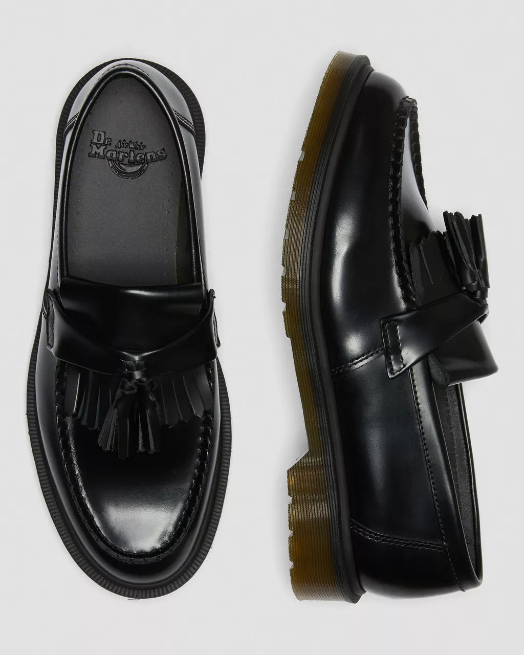 Classics — redefined. The Adrian loafer blends mod-inspired style with rugged DM’s durability, detailed with double tassels and a kiltie fringe. Our durable Polished Smooth leather can be worn polished to perfection or scuffed and tough. The grooved sole keeps the bounce in your step — locked in with a plain Goodyear welted construction.
