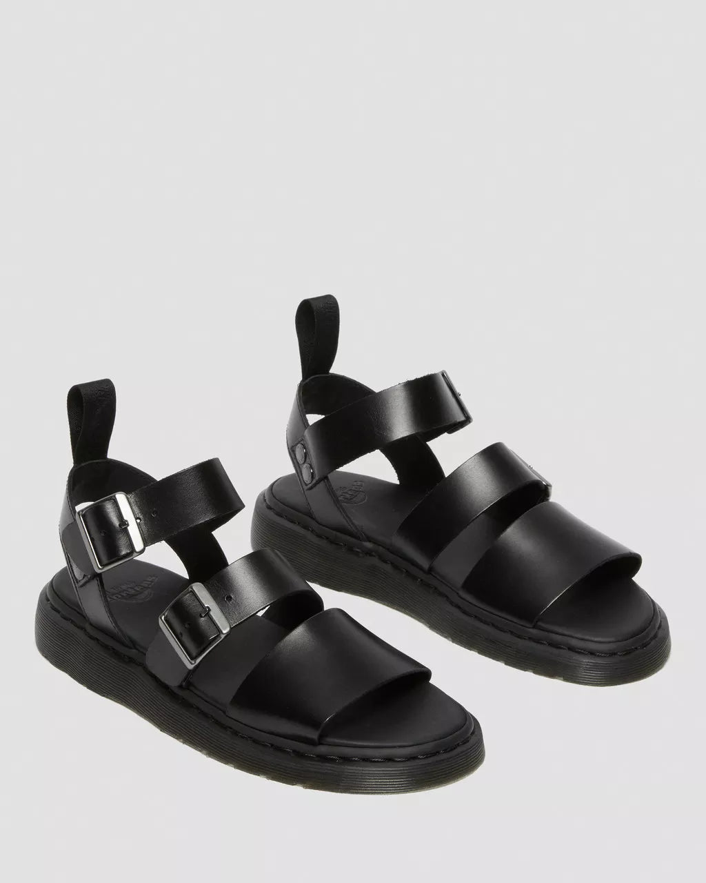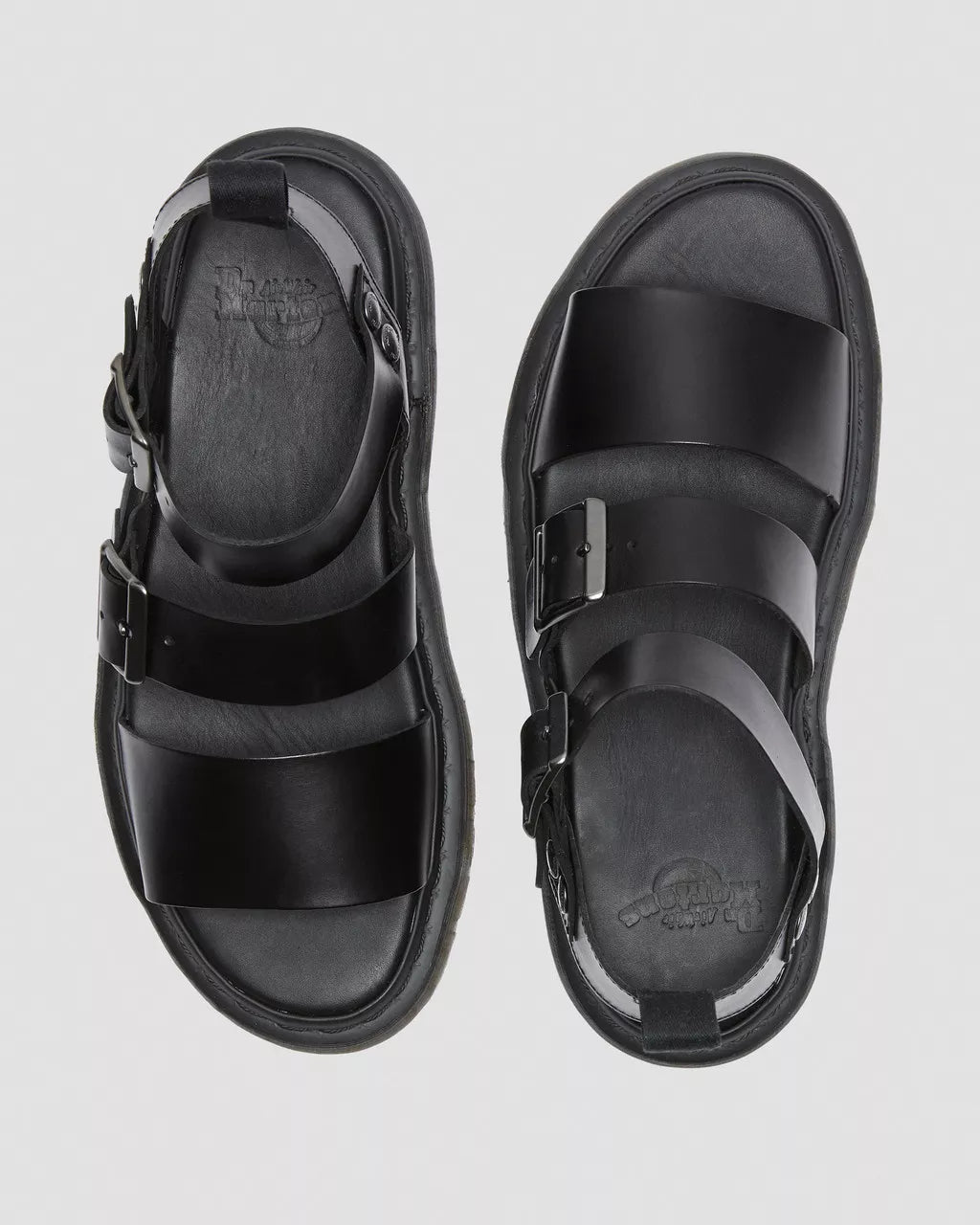 Reinventing the Open AirWair sandal from our archives, we created this bold, gladiator-inspired entry to our Shore collection. Featuring wide straps, two buckles for a perfect fit, silver stud rivets and our signature heel tab, it approaches warm weather dressing with a definite Dr. Martens attitude and adjustable buckle fastening.