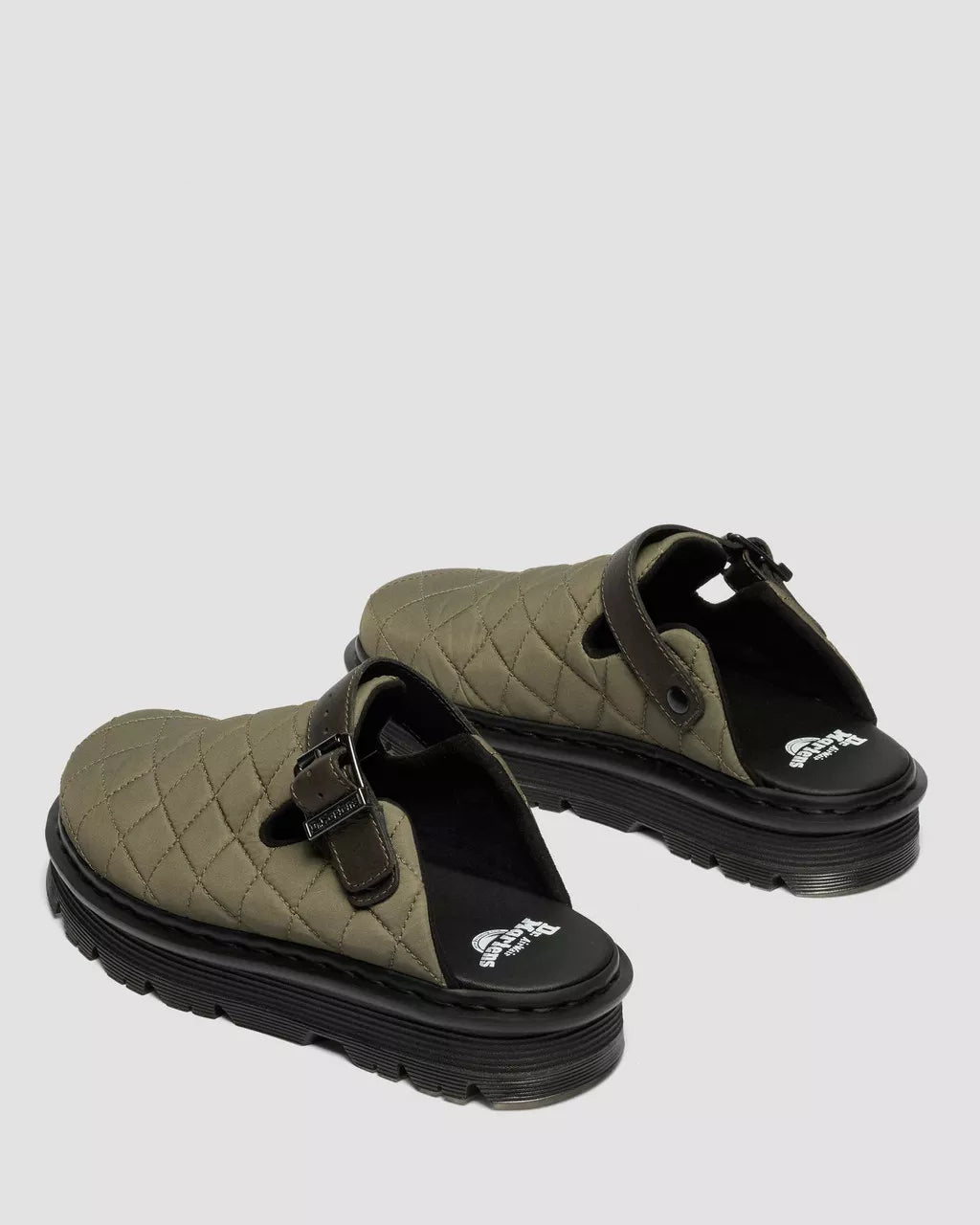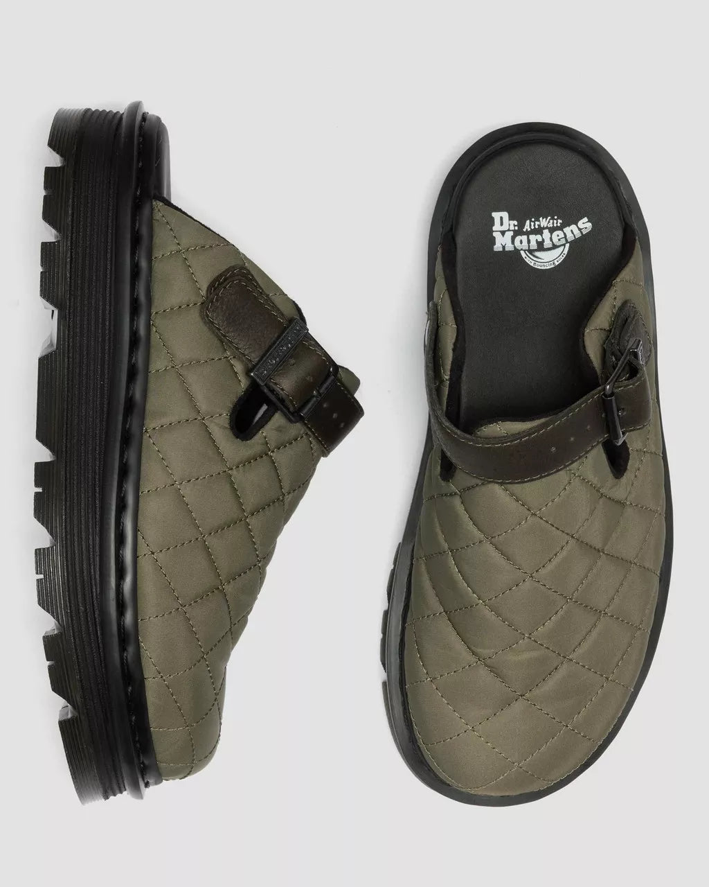 Comfort without limits. Our chart-topping Zebzag mules get a fresh update in quilted Econyl Canva—made with recycled materials. Built on a hybrid air-cushioned sole fusing featherweight EVA with rugged PVC, they cushion life’s chaos while staying tough underfoot. An adjustable strap in Grizzly leather ensures a secure fit, while a black PK mesh lining keeps things breathable, and black welt stitching marks the mules as unmistakably Doc’s. Ready, set, relax.