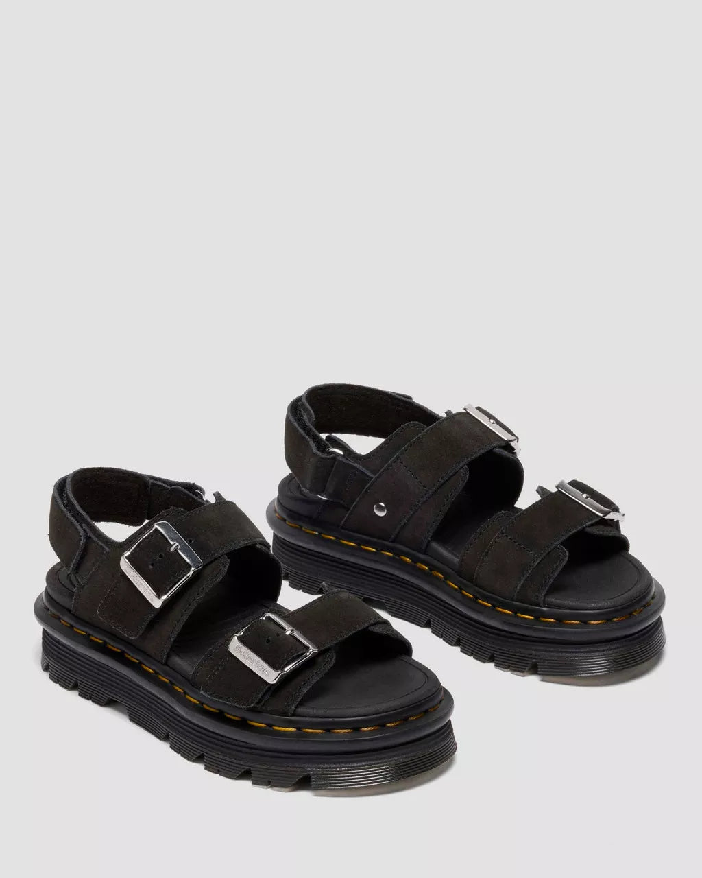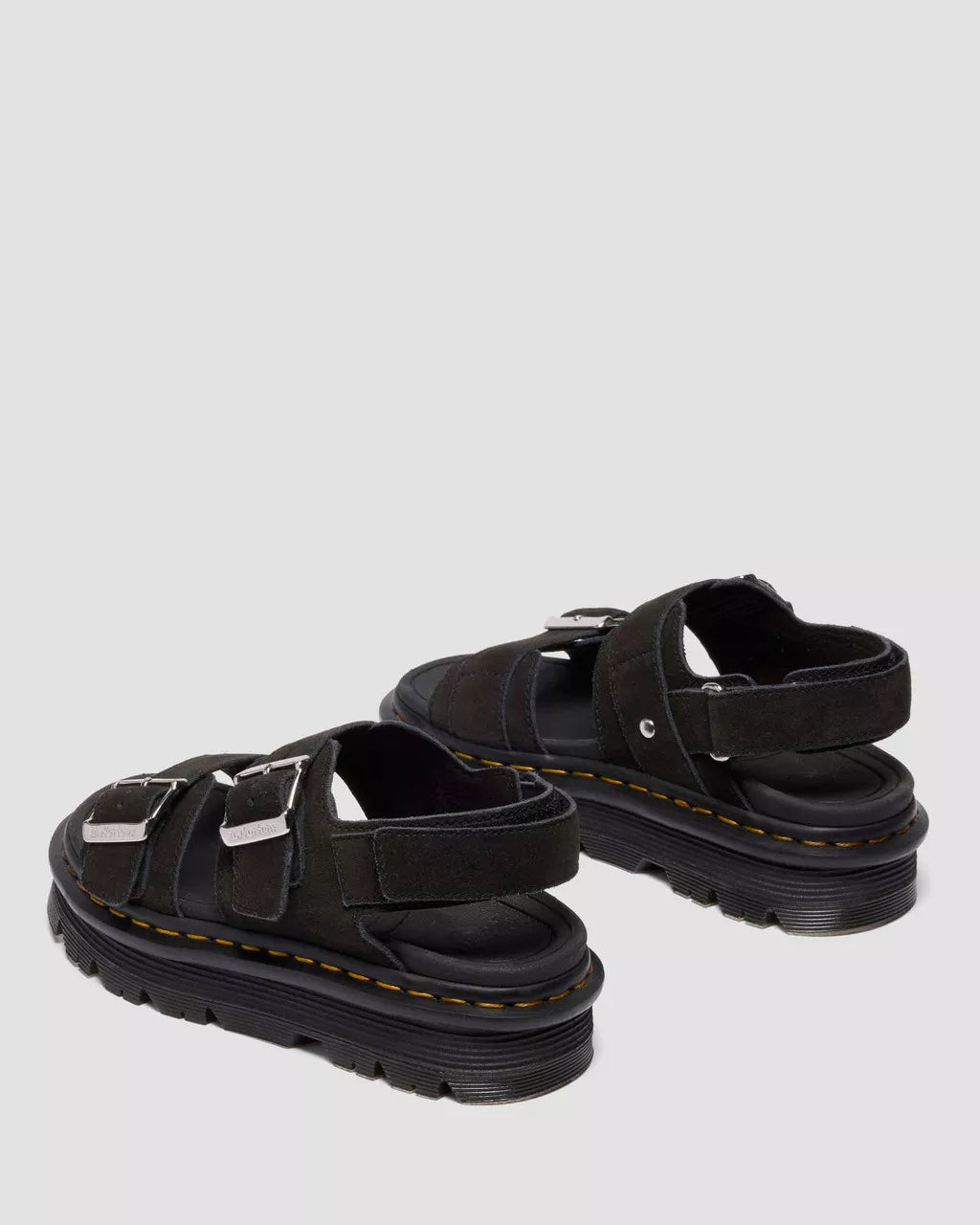 Comfort you don’t have to stay home for. Our new Zebzag sandal is triple adjustable for a fit that fills your feet with stamina. Equipped with two adjustable buckles and a Riptape ankle strap. The upper is dressed in soft-yet-hardworking EH Suede for texture that looks as good as it feels. The ergonomic Zebzag sole combines lightweight EVA and durable PVC to give your feet an easy ride without limiting your destination. The sole boasts distinctive DM's signatures, with a bold tread pattern, exaggerated grooving, and yellow welt stitching. We've chosen this leather specifically for its depth of color. You might find some of the dye transfers, so try and wear with darker colors if you can.